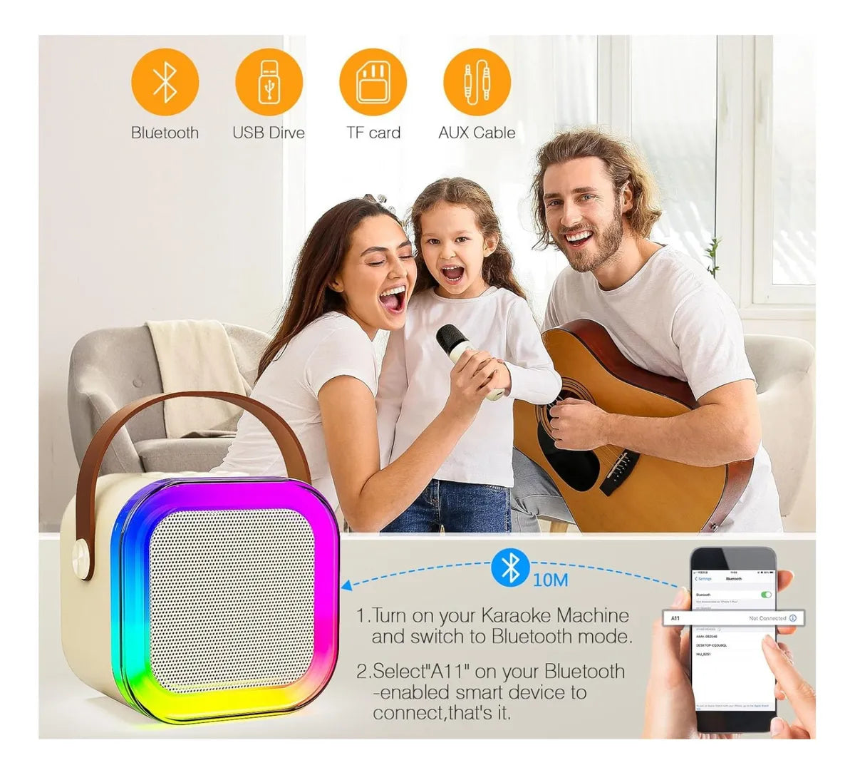 Con nuestro Set de Karaoke Bluetooth, con luces de Colores vas a transformar cualquier ocación en una experiencia mágica, llena de música y diversión. 🎶